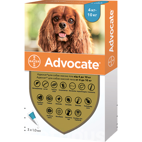 | до 4кг | Адвокат® для маленьких собак | 0,4 | мінімум 10 | мінімум 2,5 |