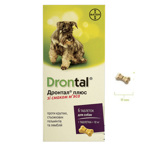 Дронтал Плюс таблетка антигельмінна для собак зі смаком м’яса (6 таблеток)