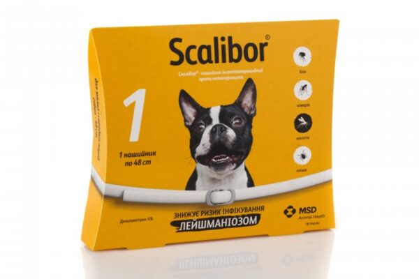 Ветпрепарати MSD Скалібор — це інсектоакарицидний нашийник для собак, що запобігає ураженню кліщами, укусам москітів (Phlebotomus perniciosus) і комара звичайного (Culex pipiens), одночасно надійно захищає тварину від захворювань, що переносяться зазначеними комахами: бабезіозу, бореліозу, дирофіляріозу, ерліхіозу, енцефаліту та лейшманіозу.